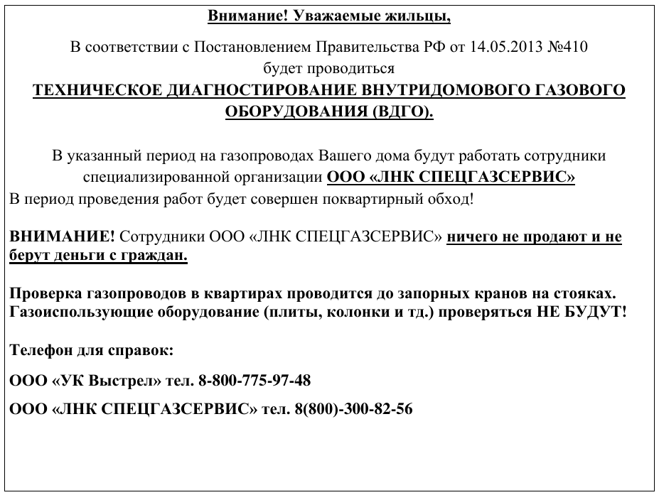 Дорогие жители, важная информация для газифицированных СТАРЫХ домов возрастом более 30 лет!